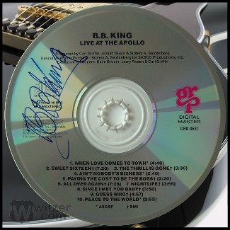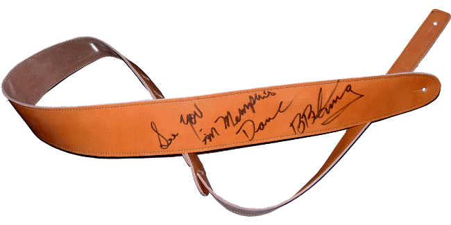 My collection of B.B. King memorabilia is uniquely mine, each being a treasured memento of our meetings; a Gibson pickguard framed with museum quality, many discs and booklets remaining protected in their CD case, the blues club menu in my kitchen and my muddy guitar strap always ever-present in my home office.... 'See You In Memphis Dave' written on it from when we once spoke of meeting there again one day. It didn't seem to matter how many times I had already met and spoke with 'B', the thrill to see him each time was never diminished.